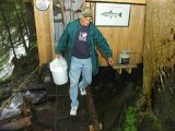 ? Paul is demonstrating how theclub stocks the fish which are placed in bags in coolers. Pails are used to carry the fish to the stream once the site has been reached. |