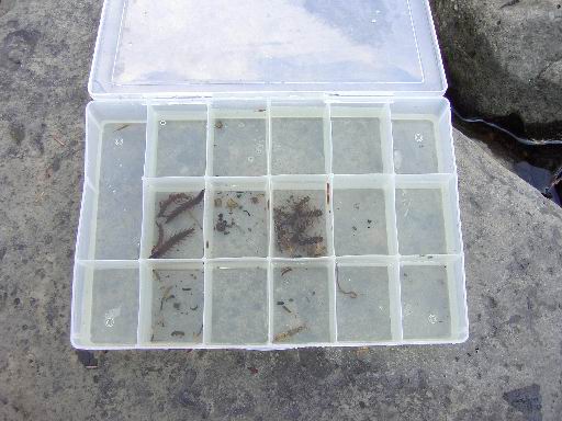 caddis fly larva. To see a close up of these creatures, click on the compartment of interest. |